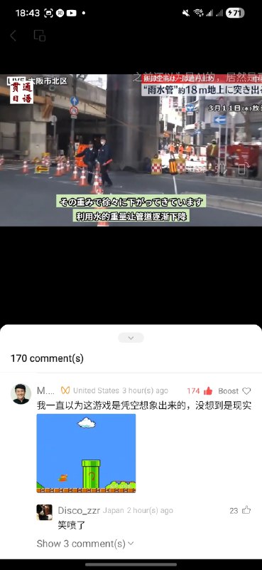 日本NHK等媒体报道,大阪梅田中心大厦西侧新御堂筋地下突然冒出这么大一根东西来。😮